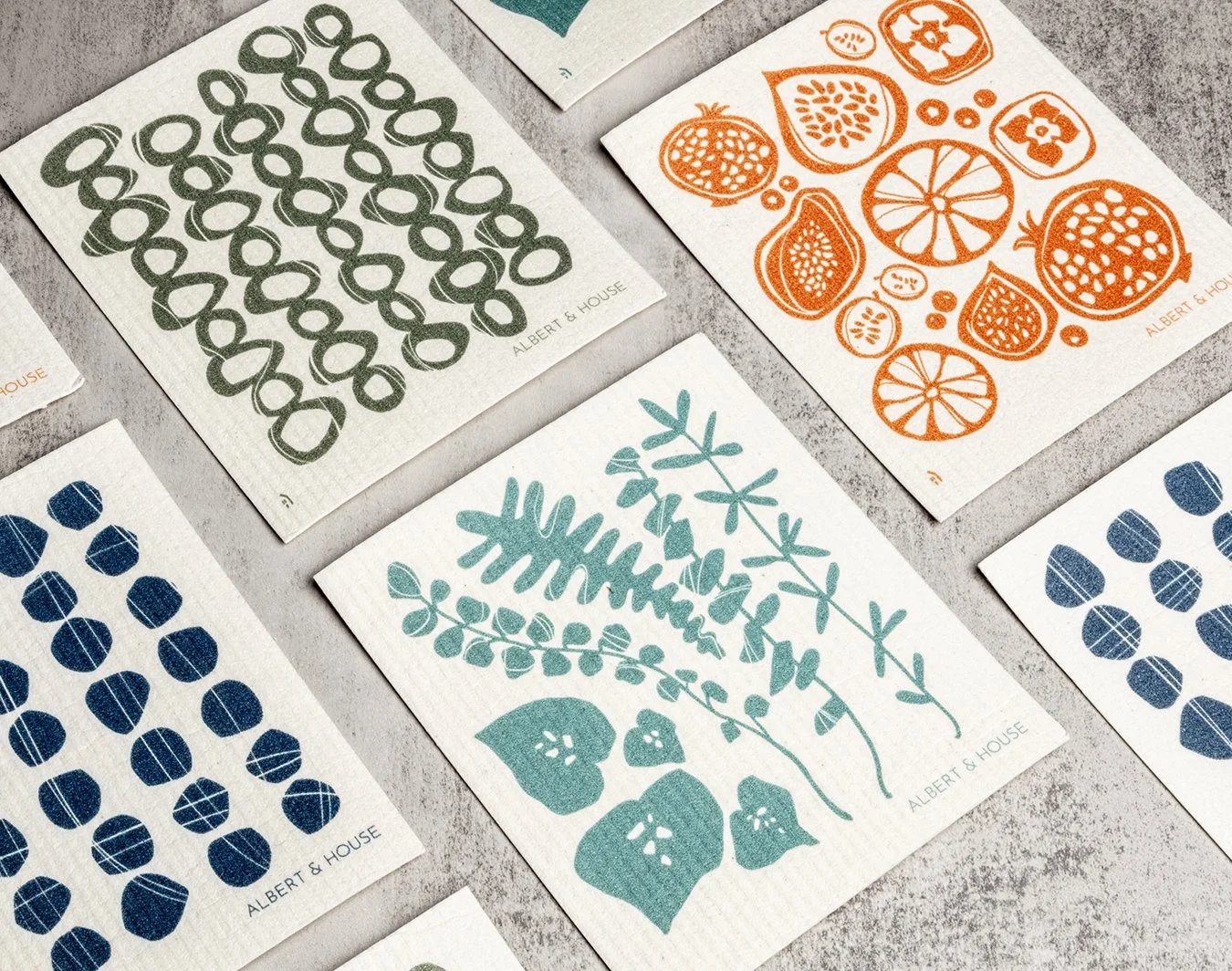 Albert & House is an entrepreneurial venture in producing illustrated home goods through a sustainable mindset and the many challenges to producing a sustainable product. By sourcing environmentally friendly materials such as 100% renewable cotton, biodegradable cellulose sponges, recycled paper, and rice paper stickers, Albert & House strives to produce and print responsibly. Inspired by a love of nature and patterns, Albert & House tea towels and cellulose sponges are functional for everyday use.